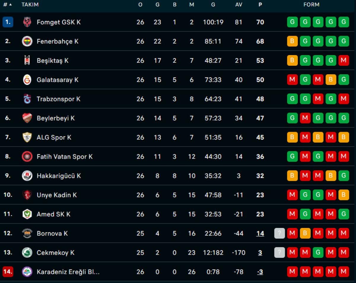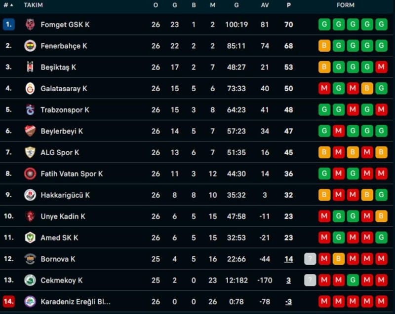 Bu sonuçla ligdeki puanını 70'e çıkararak ligi ilk sırada tamamlayan Fomget Gençlik Kadınlar Süper Lig'in şampiyonu oldu.