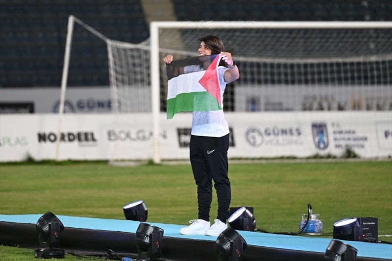 Bazı yabancı oyuncuların çocuklarıyla katıldığı organizasyonda futbolculardan Beyza Kocatürk, Filistin bayrağı açarak Gazze'de yaşanan katliama dikkati çekti.