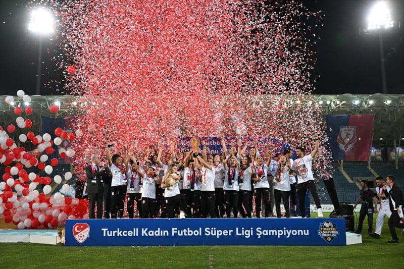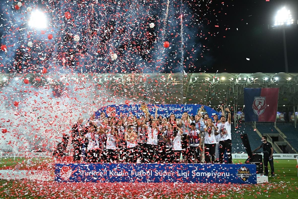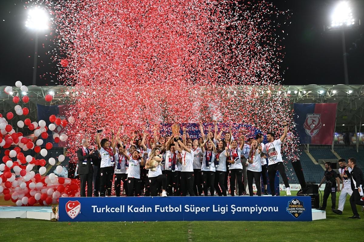 Kadın Futbol Süper Ligi'nde 2024-2025 sezonunu şampiyon tamamlayan Ankara Büyükşehir Belediyesi FOMGET, düzenlenen törenle kupasına kavuştu.
