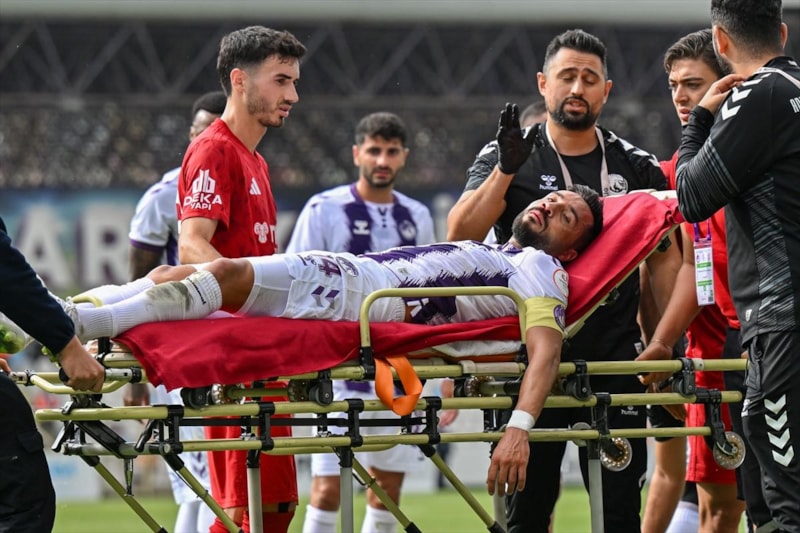 Ankara Keçiörengücü forması giyen İbrahim Akdağ, yaşadığı sakatlığın ardından hastaneye kaldırıldı.