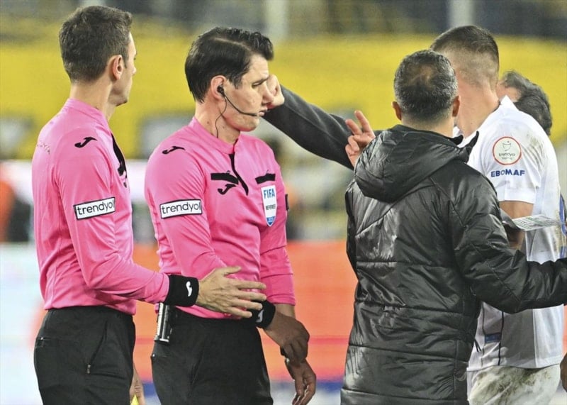 Neye uğradığını şaşıran hakem Meler'in gözü şişerken, kendisini futbolcular sahadan uzaklaştırdı.