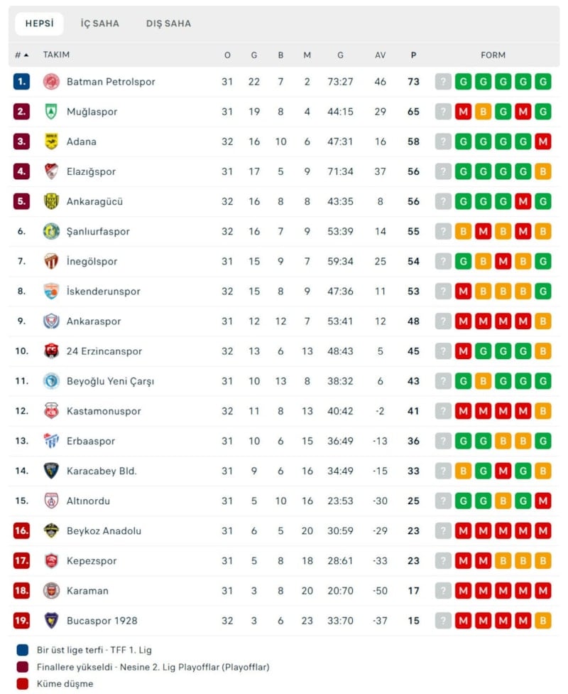 2. LİG BEYAZ GRUP'TA PUAN DURUMU