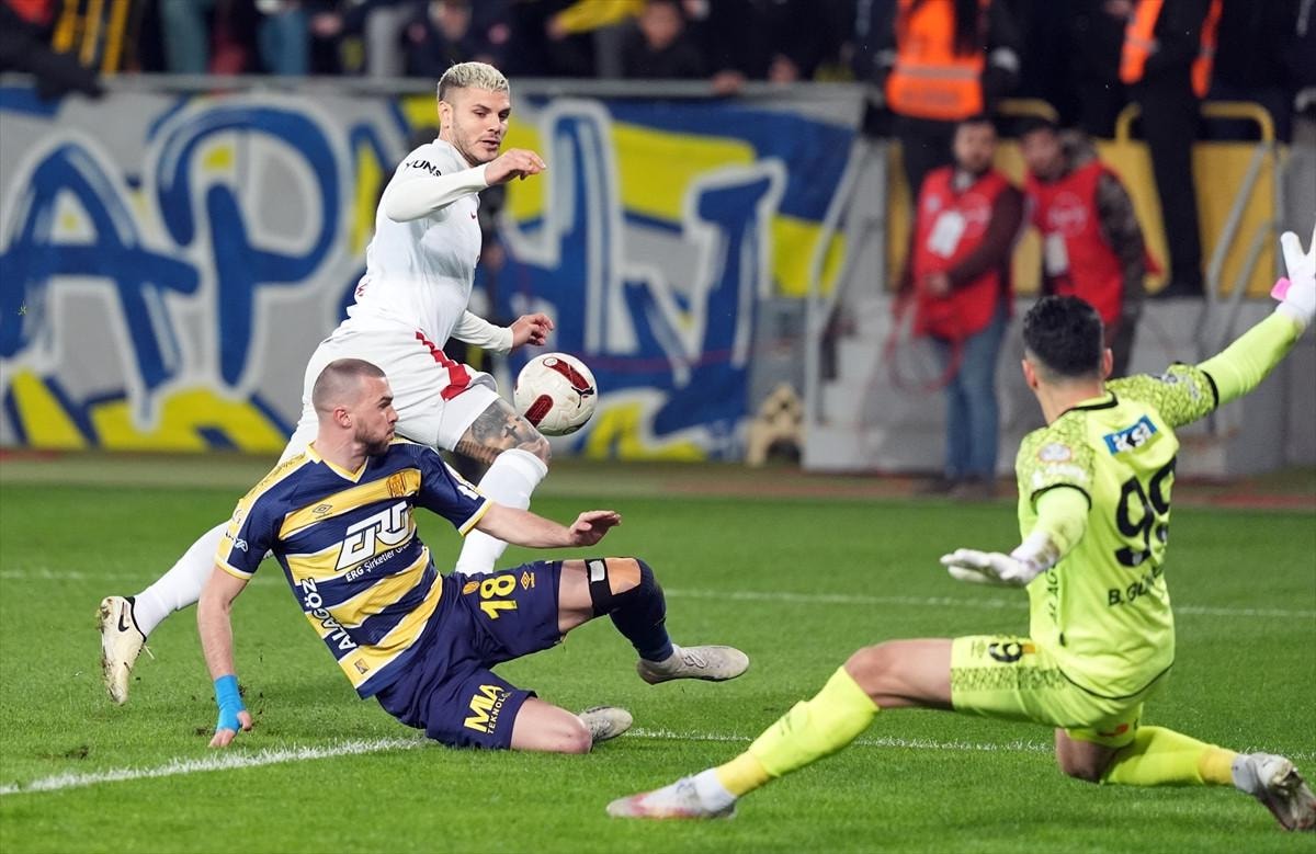 30' Galatasaray etkili geldi. Köhn'ün ara pasında sol kanattan savunma arkasına sarkan Kerem Aktürkoğlu ceza sahası dışındaki Icardi'ye pasını verdi. Icardı'nin gelişine estetik vuruşunu kaleci Bahadır kornere çeldi.