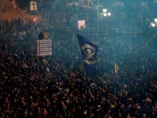 Sarı-lacivertli futbolcular, yönetim ve taraftar atkıları, bayrakları, meşaleleri ve tezahüratlarıyla renkli görüntülerle kutlamalarını sürdürürken gecenin ilerleyen saatlerine kadar devam eden organizasyonda yerel sanatçılar sahne aldı.