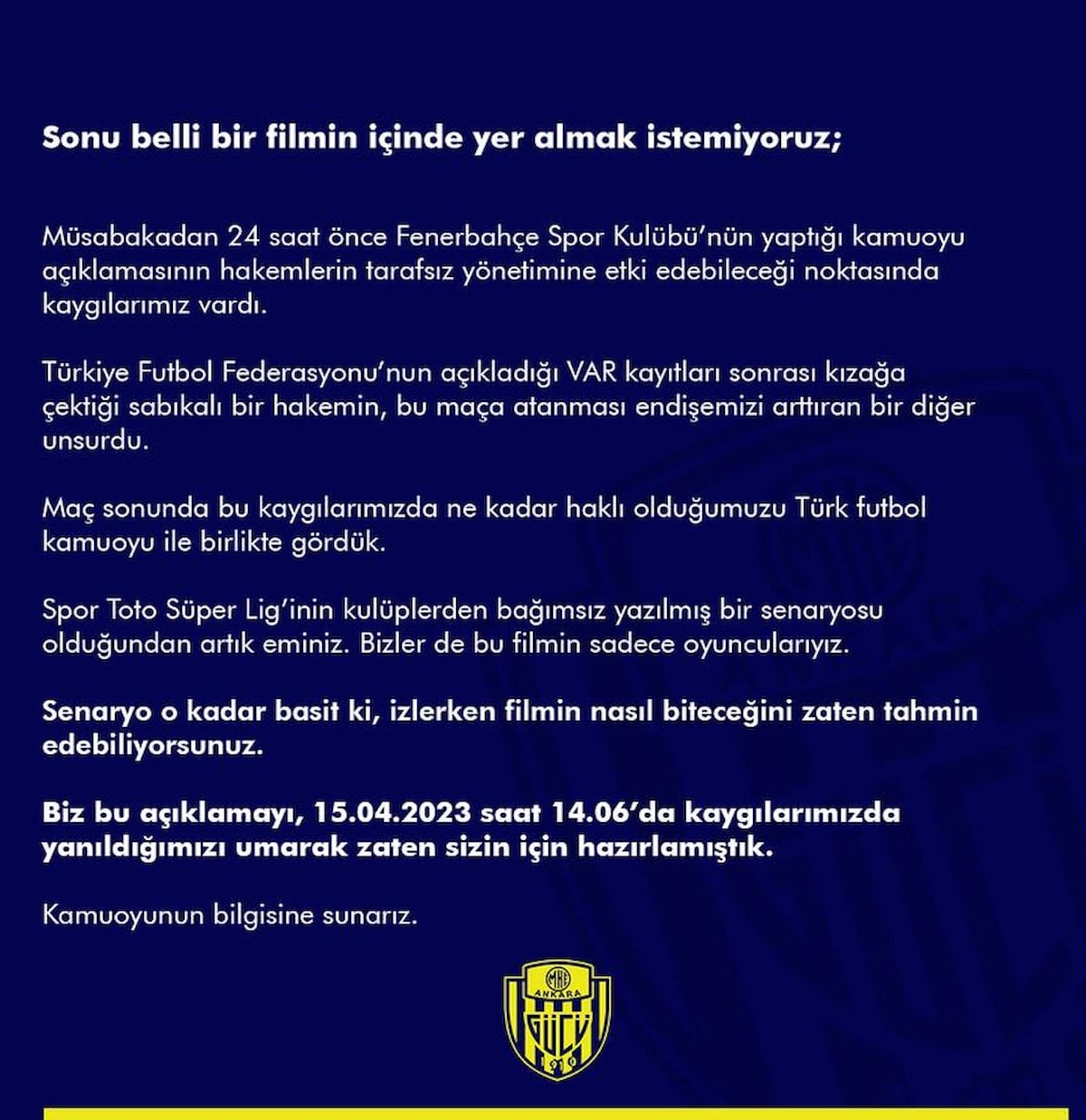 Ankaragücü de bir açıklama yaparak maç ile ilgili tepkisini ortaya koydu.