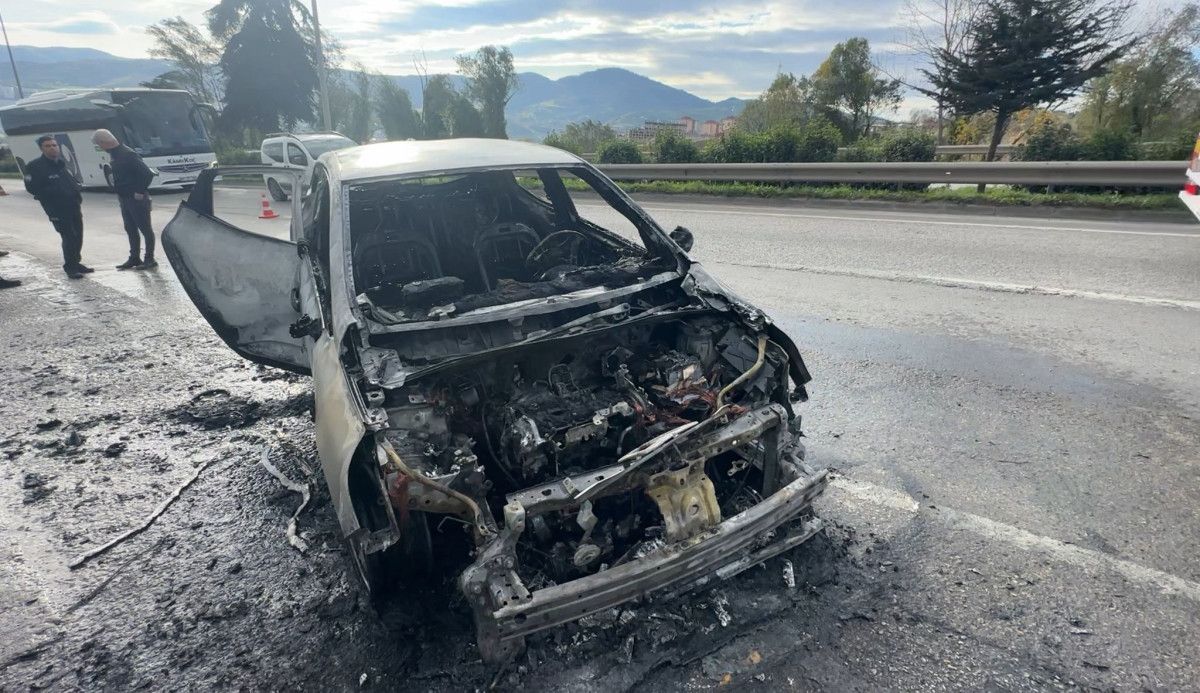 Ankara Bulvarı'nda Samsunsporlu oyuncu Anthony Musaba'nın kullandığı 34 DAE 333 plakalı kiralık araç, seyir halindeyken motor kısmından alev aldı.