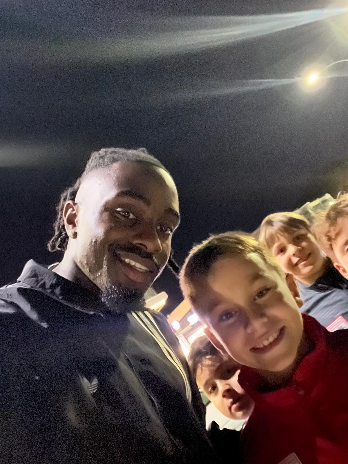 Bir süre top oynayıp sohbet eden Antoine Makoumbou, çocukların fotoğraf isteklerini de geri çevirmedi.