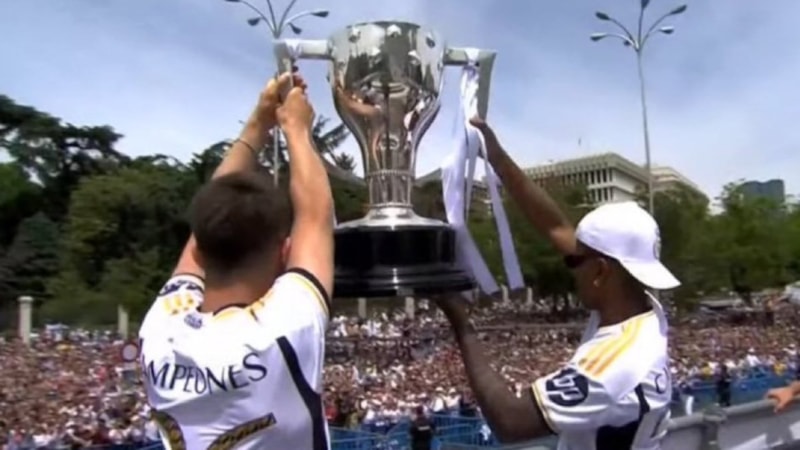 İspanya LaLiga'da 36. şampiyonluğunu 4 Mayıs'ta garantileyen Real Madrid, kupayı bugün aldıktan sonra kutlamayı her kupa merasiminde olduğu gibi taraftarlarıyla ve Madrid'deki resmi kurum temsilcileriyle birlikte yaptı.