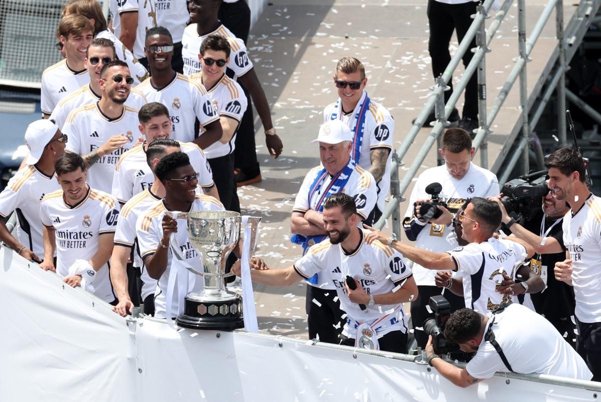 Sol Meydanı'nda yer alan Madrid özerk hükümet binası balkonunda yapılan konuşmalarda kaptan Nacho ve teknik direktör Ancelotti ile Luka Modric, Jude Bellingham, Antonio Rüdiger gibi bazı futbolcular 1 Haziran'da Wembley Stadı'nda Borussia Dortmund'a karşı oynanacak Şampiyonlar Ligi finalini kazanarak, taraftarlara kupayla dönme sözü verdi.