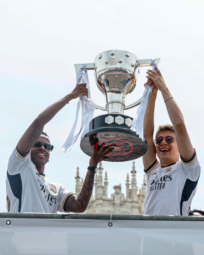Kutlamalar sırasında takım arkadaşı Brahim Diaz ile birlikte Real Madrid televizyonuna kısa bir açıklama yapan milli futbolcu Arda Güler, İspanyolca "İlk defa buradayım. Çok memnunuz. Hala Madrid." dedi.