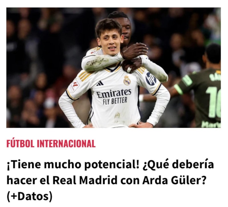 AS'ta yer alan haberde Arda Güler'in çok özel bir futbolcu olduğu belirtildi. Haberde şu ifadeler kullanıldı: