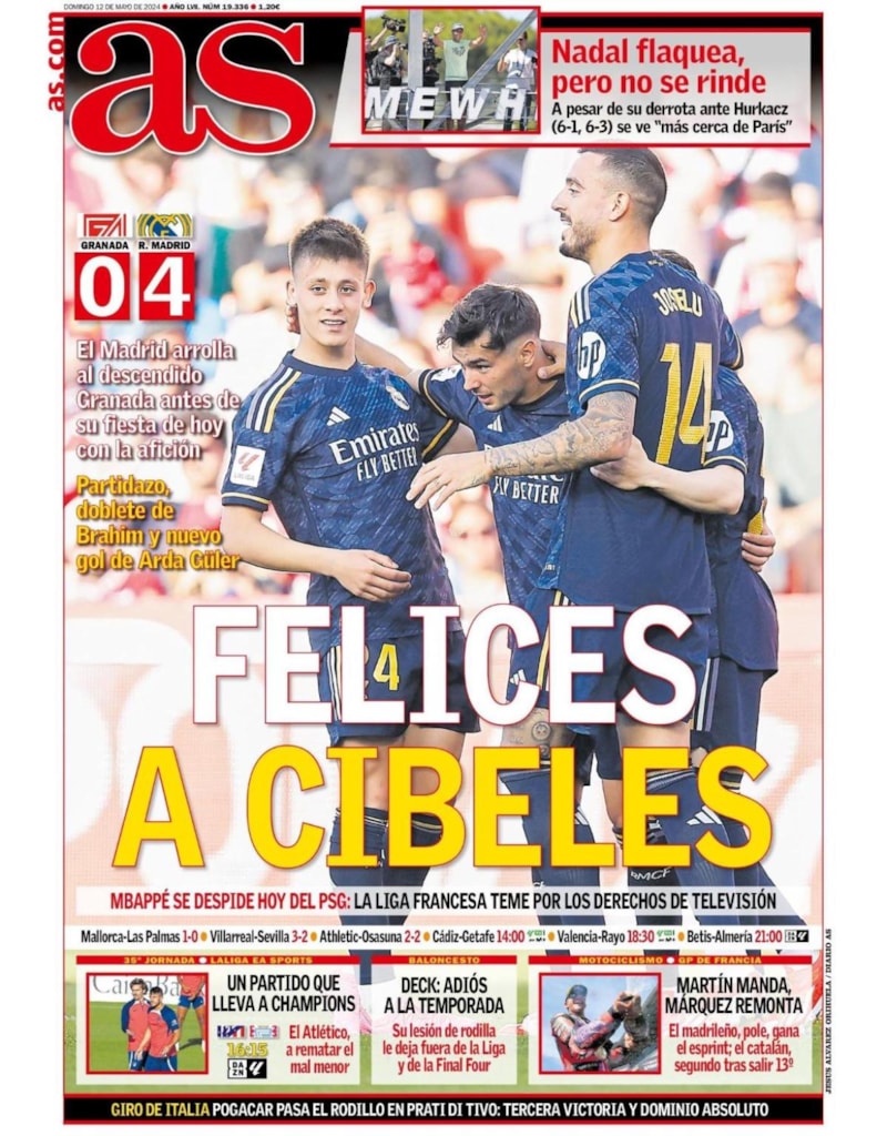 Eflatun-beyazlılara galibiyeti getiren golleri 38’inci dakikada Fran Garcia, 45+2'nci dakikada Arda Güler ile 49 ve 58’inci dakikada Brahim Diaz kaydetti.