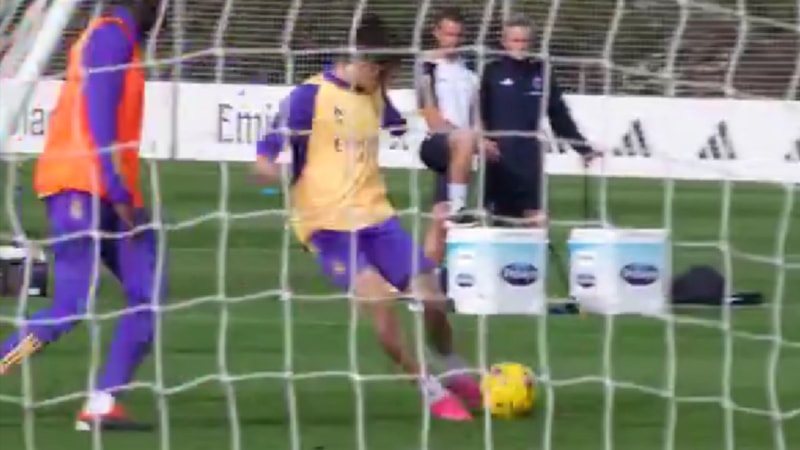 Carlo Ancelotti yönetimindeki Madrid ekibinin idmanında yıldız isim, çift kale maçta Andrii Lunin'in koruduğu kaleye harika bir gol attı.