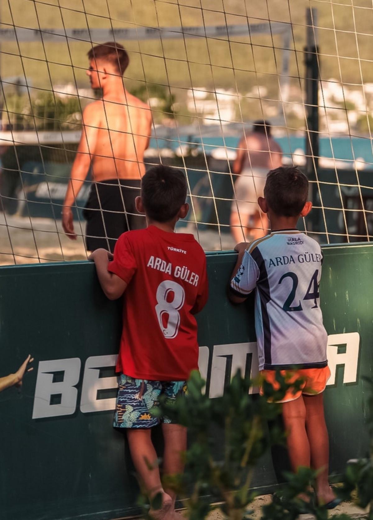 Arda Güler'in forma numaralarını giyen iki küçük hayran, Güler'in oynadığı plaj voleybolunu heyecanla izledi.