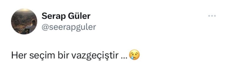 Güler paylaşımında, "Her seçim bir vazgeçiştir" sözlerini kullandı ve paylaşım kısa sürede binlerce yorum aldı.