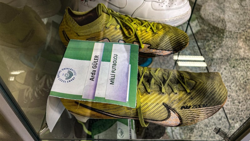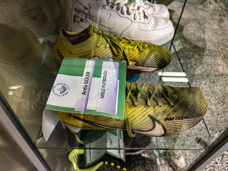 Bolu'da 250'nin üzerinde ünlünün ayakkabısının sergilendiği müzede, İspanyol devi Real Madrid'de forma giyen milli futbolcu Arda Güler'in bireysel antrenmanlarında kullandığı ve top oynamaktan yırtılan kramponları da sergilenmeye başlandı.