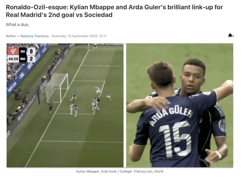 Tribuna'da yer alan haberin başlığında, Arda Güler'in ve Mbappe'nin arasındaki anlaşmanın Bernabeu'daki efsane Cristiano Ronaldo ve Mesut Özil ikilisini hatırlattığını yazdı.