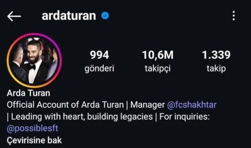 Arda Turan, Shakhtar Donetsk ile sözleşme imzalamasının ardından Instagram biyografisinden "Sadece Galatasaray" yazısını çıkarttı.