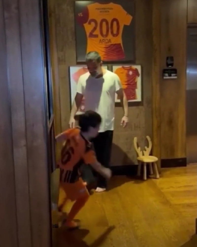 Shakhtar Donetsk Teknik Direktörü Arda Turan, oğluyla evinin koridorunda maç yaptı.