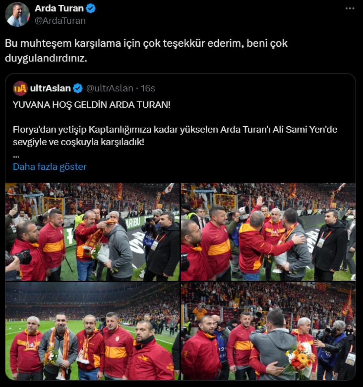 Genç teknik adam, Galatasaray taraftar grubunun "Yuvana hoş geldin Arda Turan" paylaşımını alıntıladı.