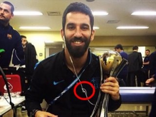 Hem Milli Takım'da hem de Barcelona kafilesindeyken çekilen resimlerde yer alan kulaklık detayında Arda Turan'ın kulaklığın düğümünü hiç çözmemesi ve o şekilde kullanması esprili yorumlara neden oldu.