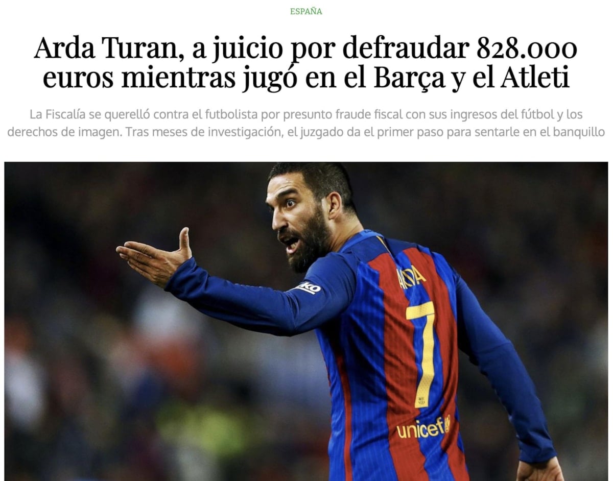İspanya'dan Vozpopuli'nin haberine göre; Arda Turan, İspanya'dan ayrıldıktan yıllar sonra 2021'de Ekonomik Suçlar Savcısı tarafından yapılan ihbar sonrası dava açıldı. Arda'nın 2015 yılından 499.740 euro, 2016 yılından 328.351 euro borcu olduğu belirtildi.
