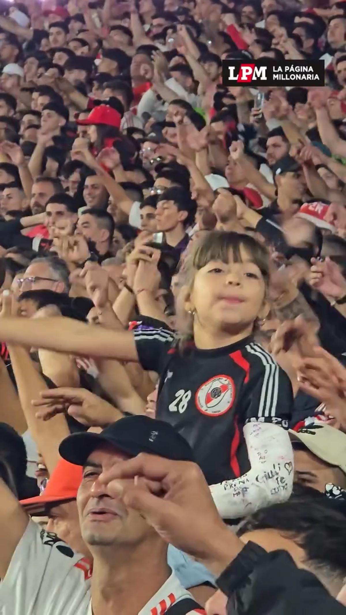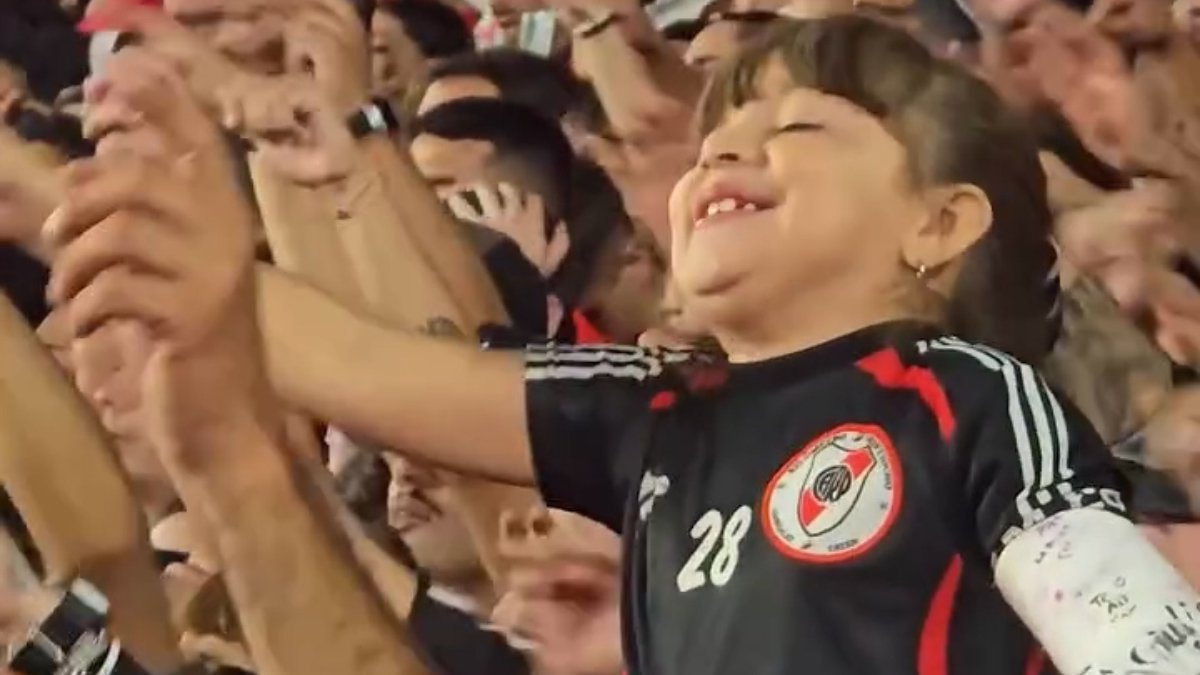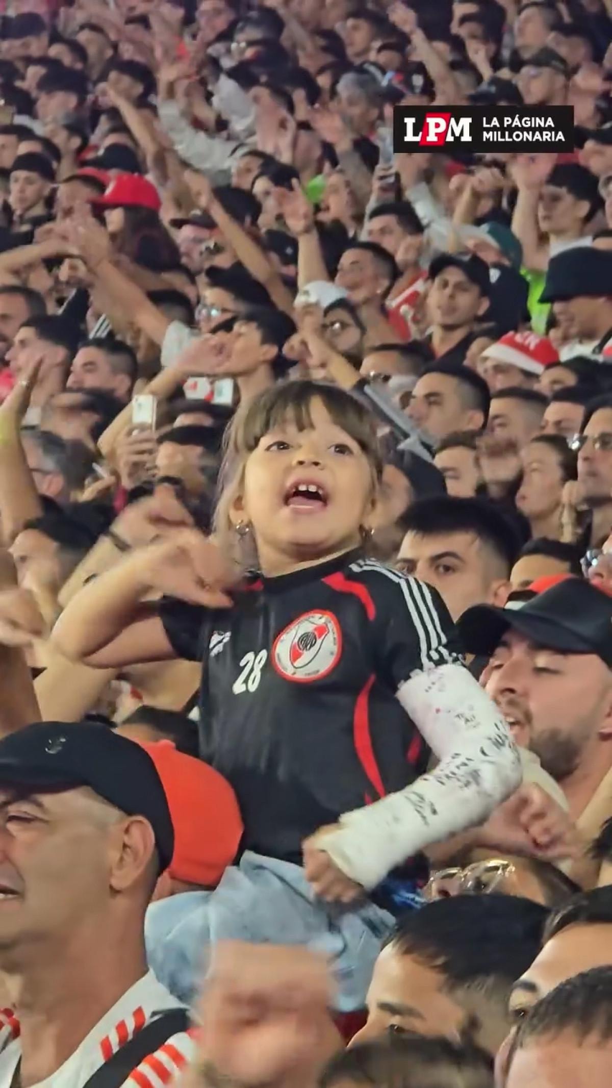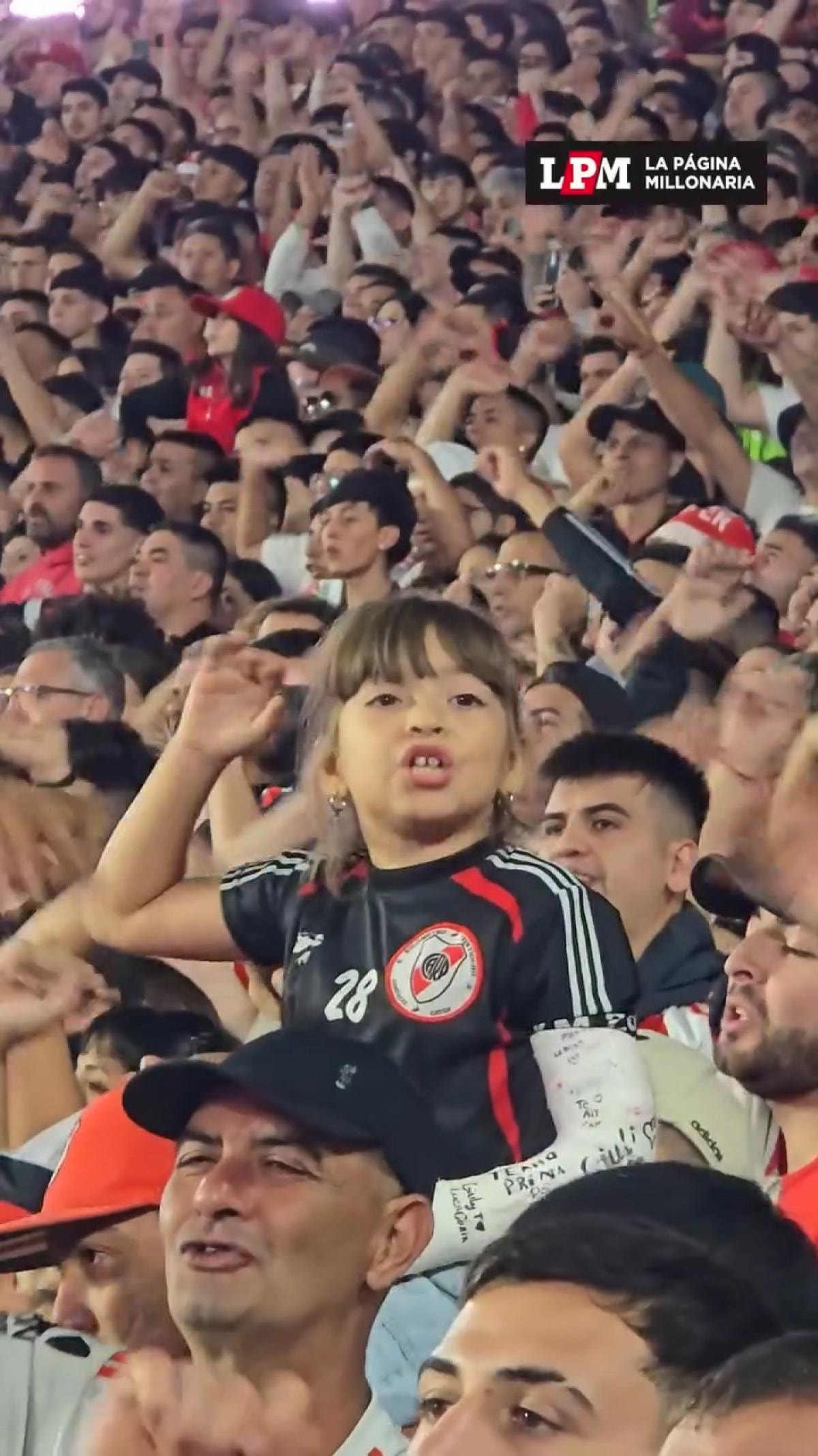 1-0'lık skorla River Plate'in galibiyetiyle biten karşılaşmada tribünlerde söylenen bestelere eşlik eden bir küçük kız dikkat çekti.