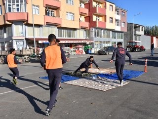 Asfalta kilim serip futbol antrenmanı yapıyorlar