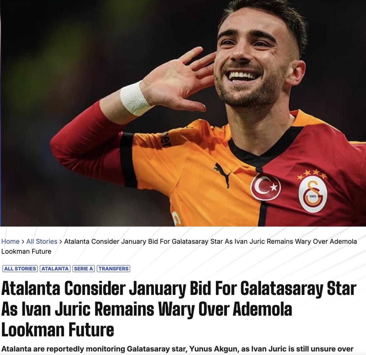 İtalya Serie A ekibi Atalanta, Süper Lig devi Galatasaray'ın yıldız oyuncusu Yunus Akgün'ü gözüne kestirdi.