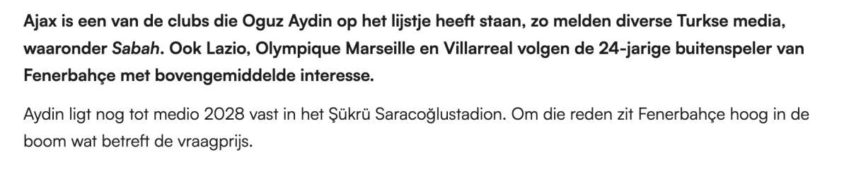 Voetbal ise Ajax'ın, fiyat istediğini bildirdi.
