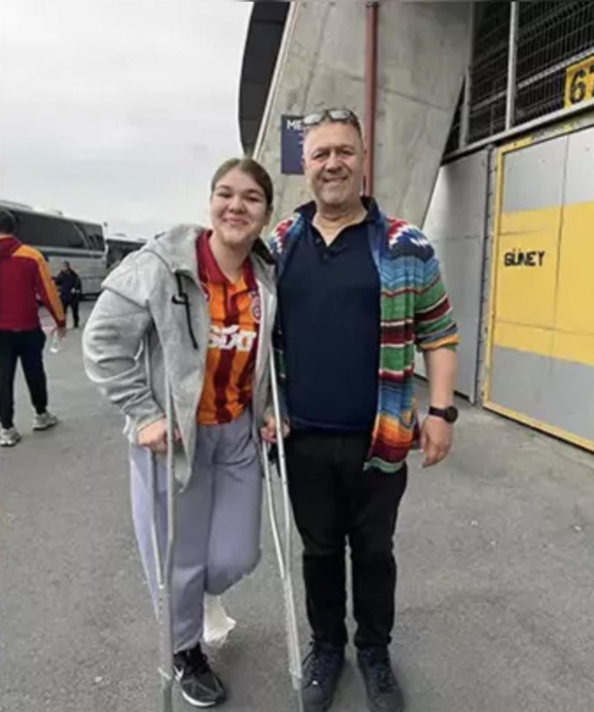Kızımla ilk maçımız. Çok mutluyuz. İnşallah şampiyon olacağız. Bu sabah ayağı burkuldu, kırık varmış. Alçıya aldırdık geldik. Londra’dan maç için geldik, yarın da dönüyoruz.