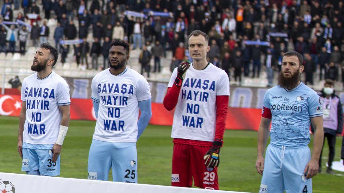 Ukrayna'yı işgal eden Rusya'ya "Savaşa hayır" tişörtleri giyerek tepki gösteren Erzurumsporlu futbolculara, takım kaptanı Aykut Demir katılmadı. "Savaşa hayır" tişörtü giymeyen deneyimli futbolcuya, sosyal medyada tepki yağdı.