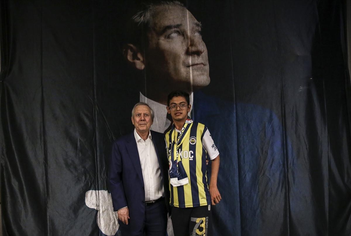 Aziz Yıldırım, konuşmasının ardından yanına gelen taraftarlar ve gençlerin formalarını imzaladı.