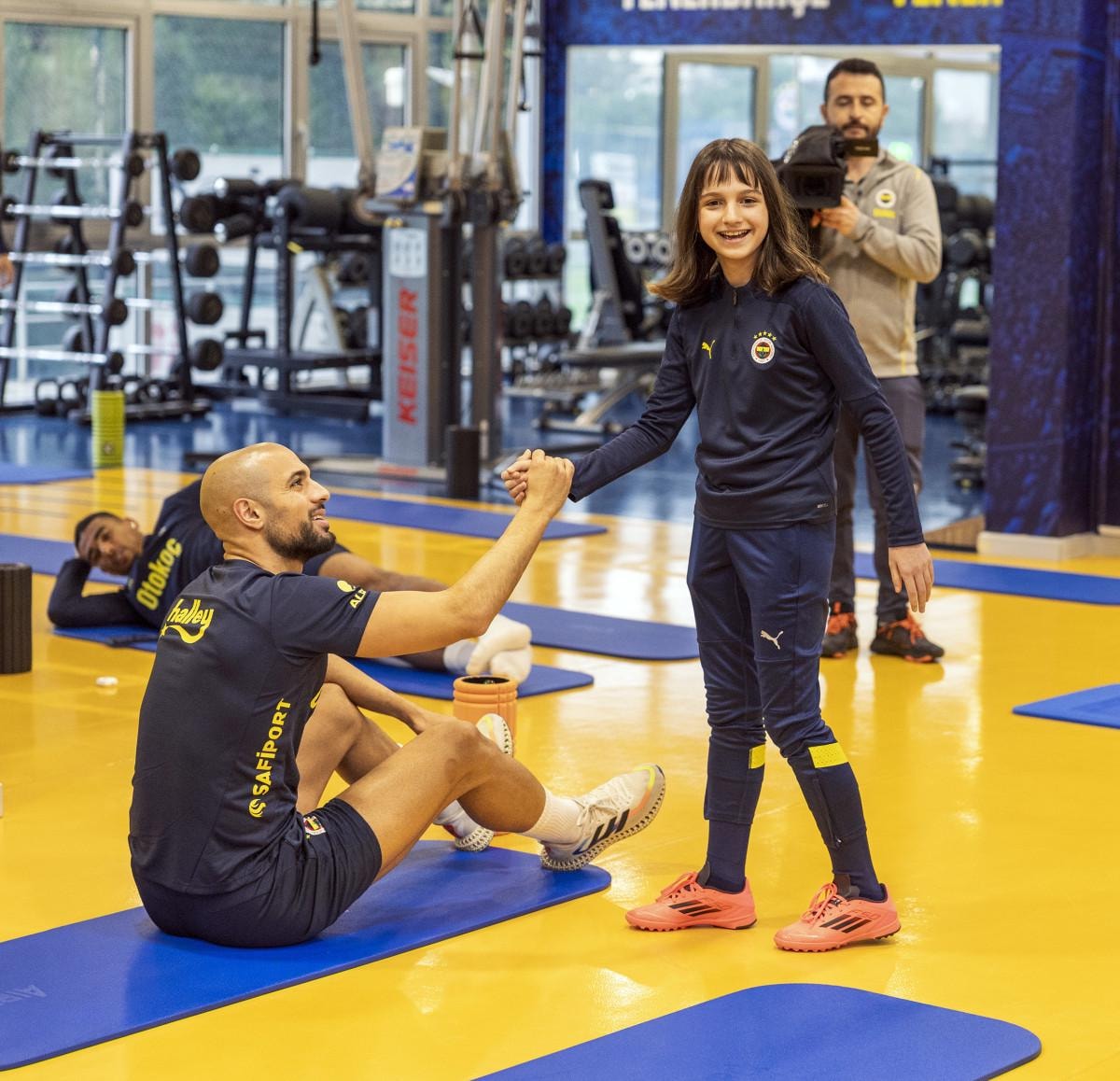 Başkan Ali Koç’un da yer aldığı ziyaret kapsamında tesislerde teknik direktör Jose Mourinho ve futbolcular ile bir araya gelen Yaz, sohbet ederken formasını da imzalattı.