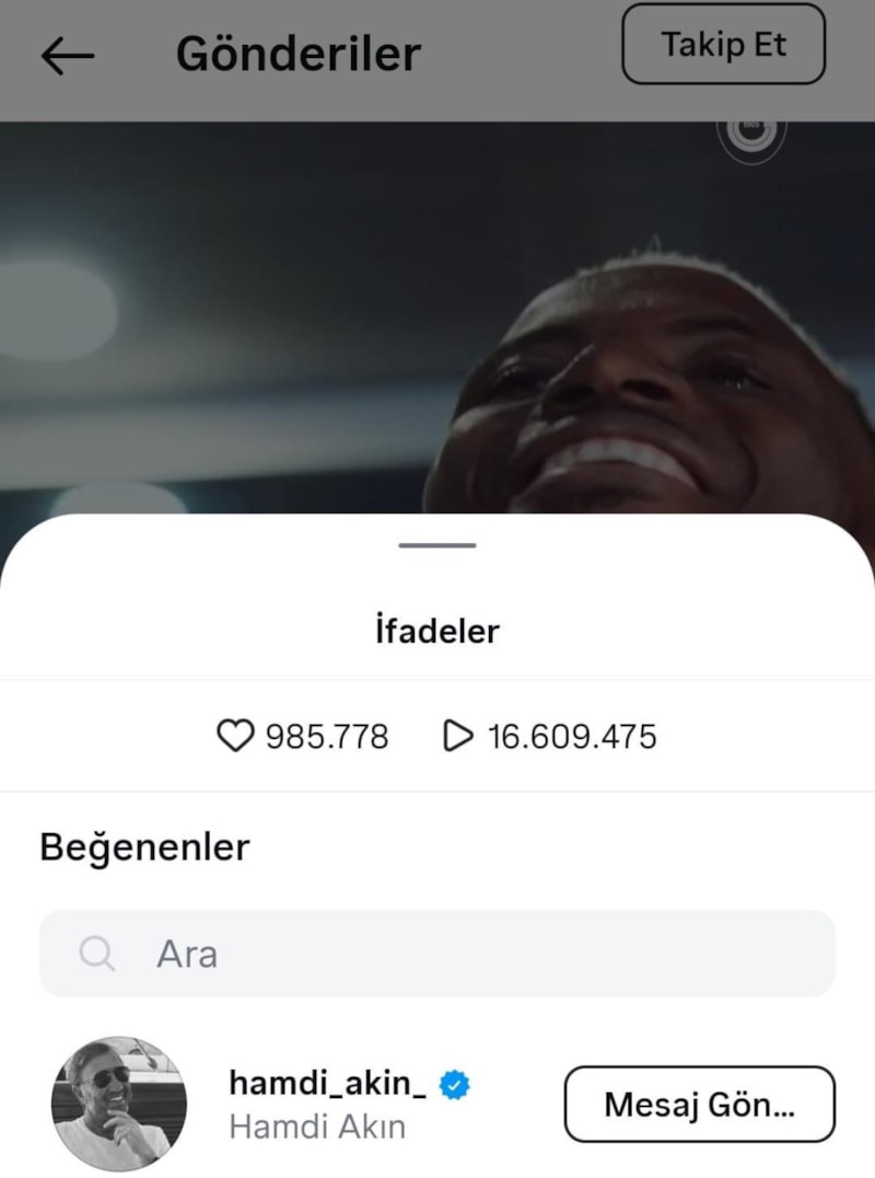 Fenerbahçe'de geçen hafta düzenlenen Divan Toplantısı'nda eski başkan Aziz Yıldırım ile yaşadığı tartışma nedeniyle gündem olan yönetici Hamdi Akın, Galatasaray'ın Victor Osimhen için paylaştığı tanıtım videosunu Instagram'da beğendi.