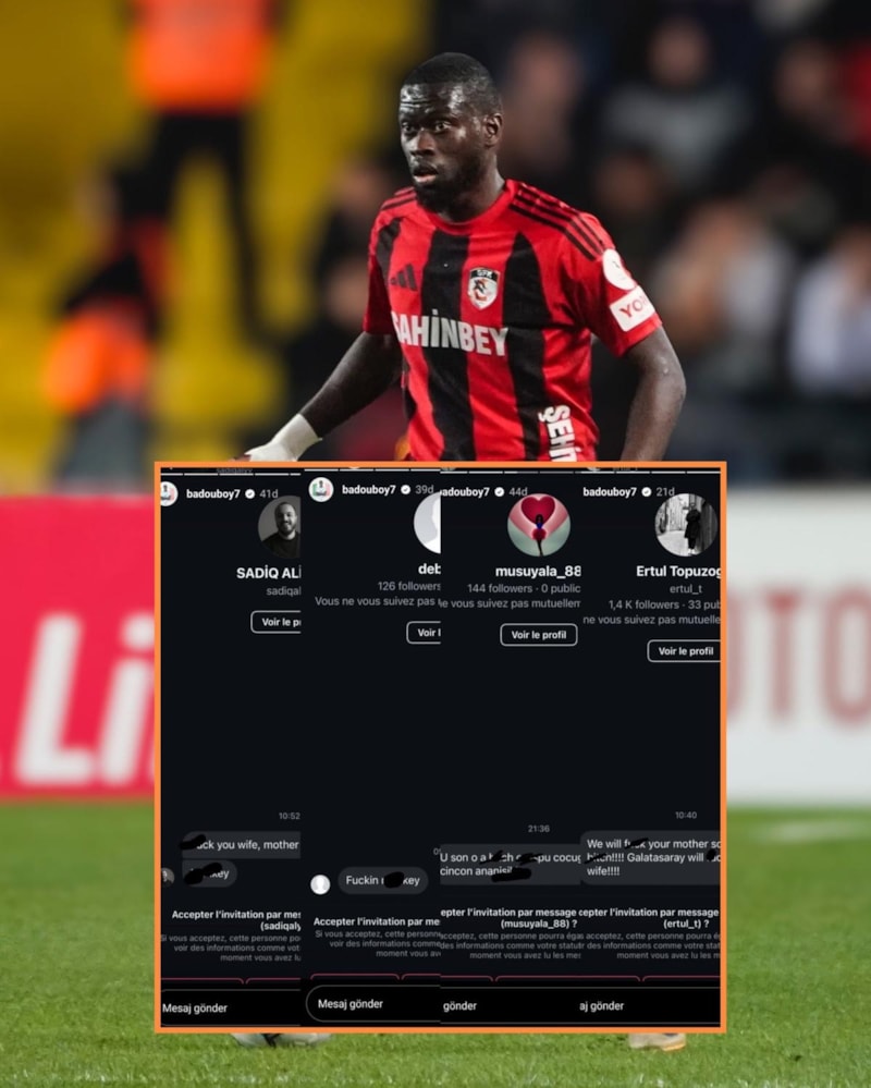 Gaziantep FK'nın orta saha oyuncusu Badou N'Diaye, Fenerbahçe ile oynadıkları maçın ardından kendisine tepki gösteren İrfan Can Eğribayat'a yanıt verdi. N'Diaye sosyal medya hesabından ise kendisine gelen küfürlü mesajları ifşa etti.