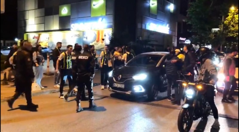 Cadde üzerine bulunan Fenerbahçe taraftarları, Galatasaraylıların araçlarına taş ve şişe fırlattı. Galatasaraylıların araçlarına saldıran Fenerbahçelilere polis müdahale etti.