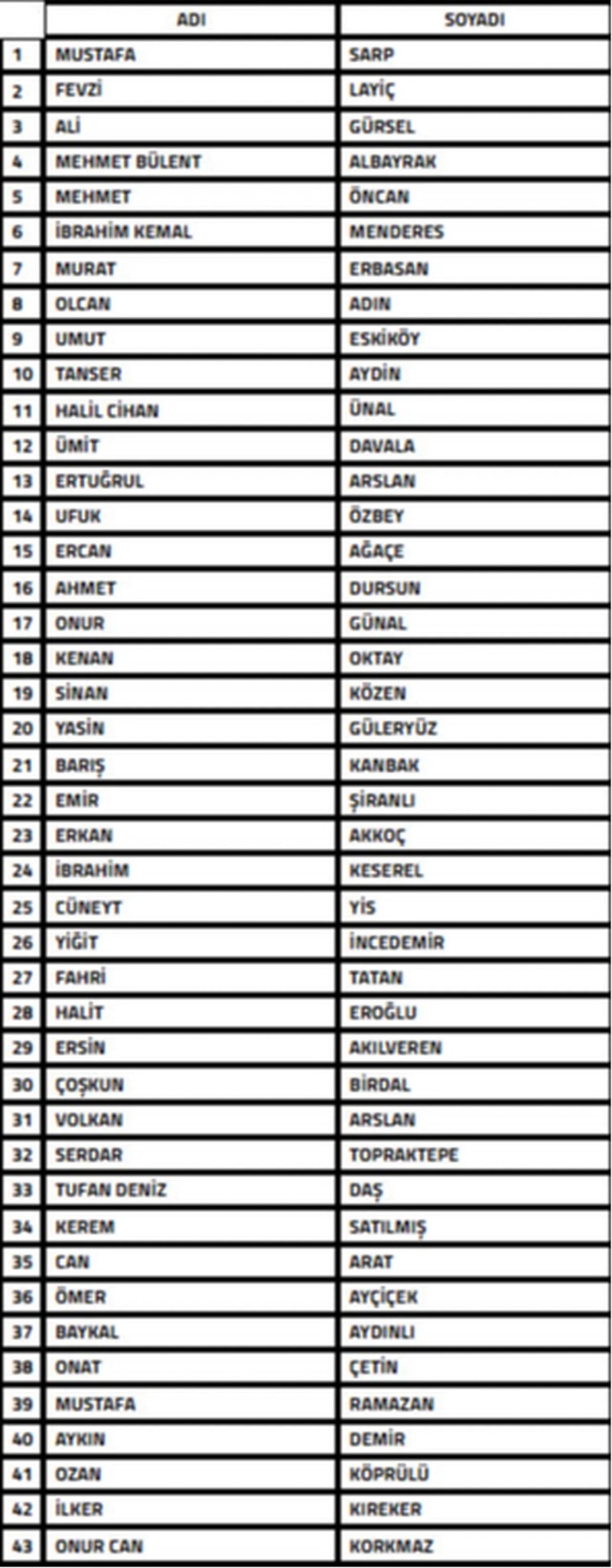 SEVK EDİLERİN İSİMLERİN LİSTESİ