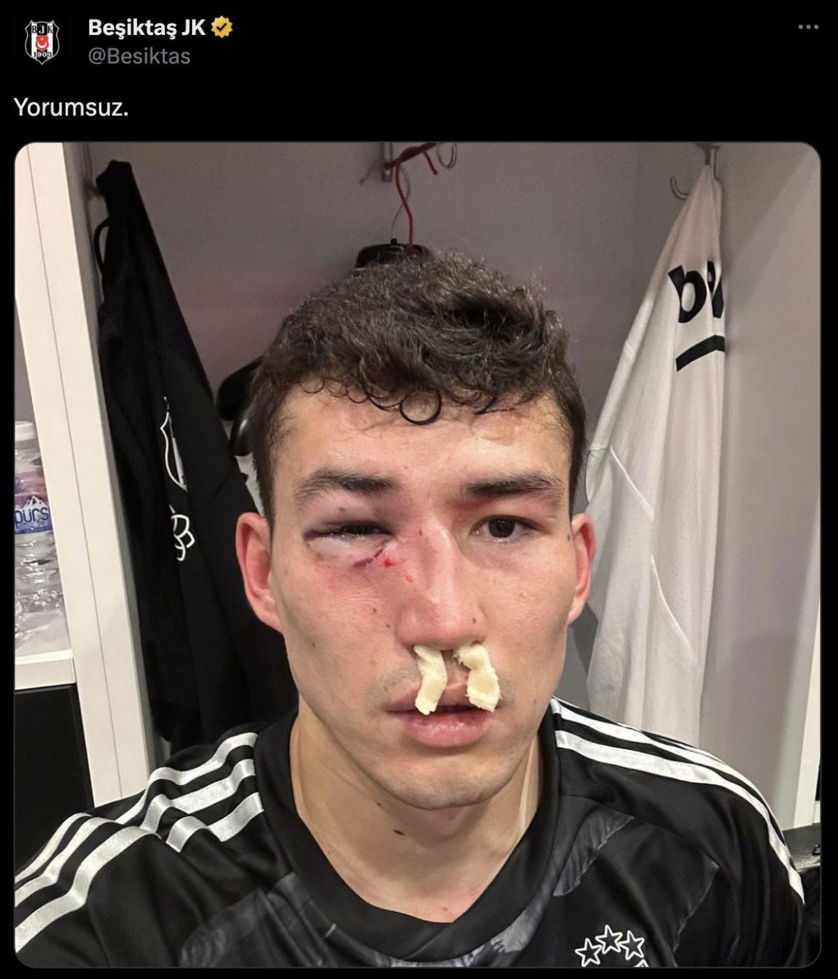 Siyah-beyazlı kulüpten yapılan açıklamada Başakşehir müsabakasının 37. dakikasında yüzüne ve burnuna aldığı darbe nedeniyle oyuna devam edemeyen oyuncunun durumu hakkında bilgilendirmede bulunuldu.