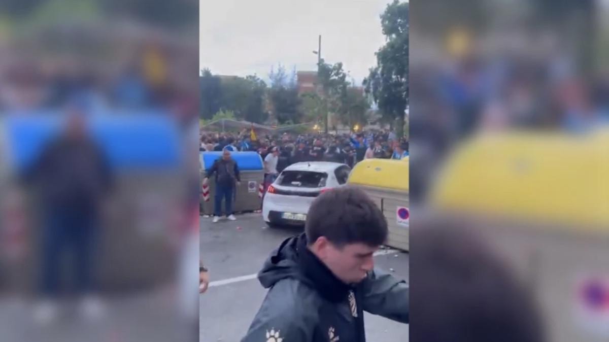 Çıkan arbede sırasında önü kesilen bir araç, Espanyol taraftarlarının bulunduğu noktada kontrolden çıktı ve son sürat gaza bastı.