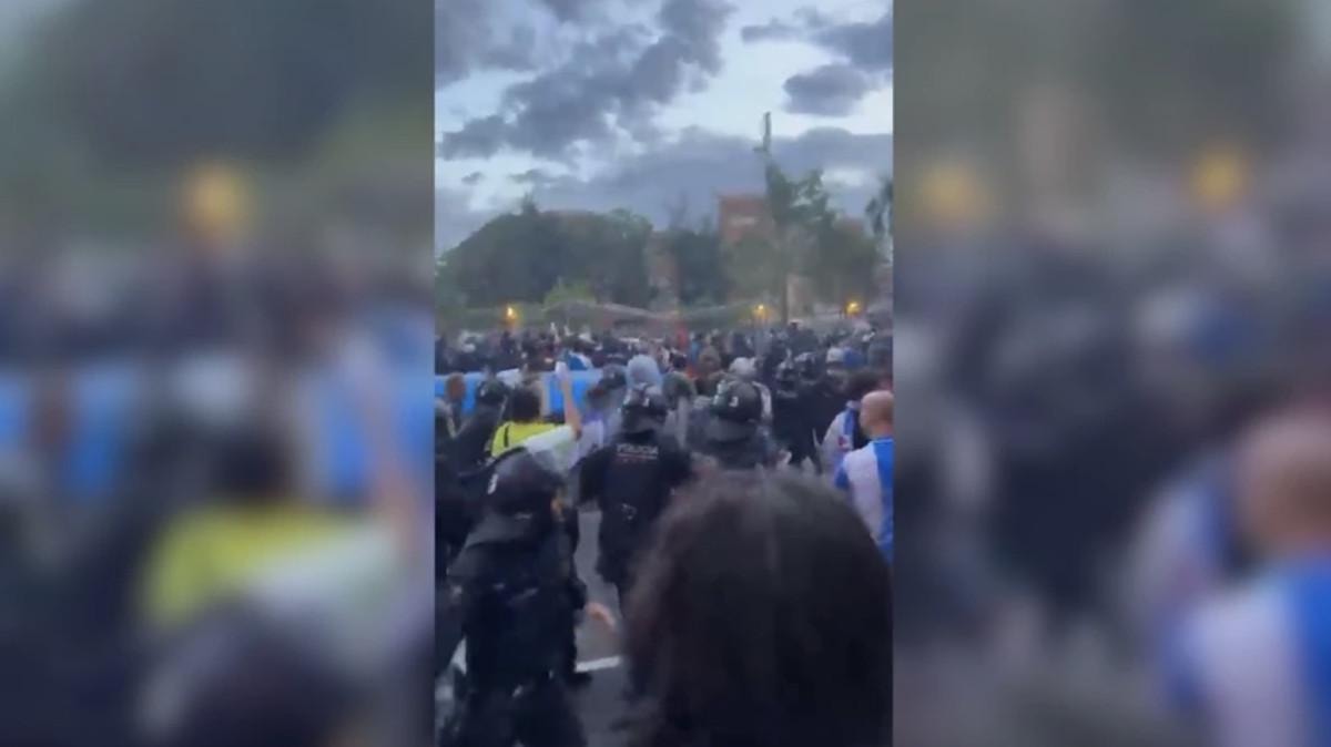 RCDE Stadyumu yakınında meydana gelen olay sırasında maç da bir süreliğine durduruldu.