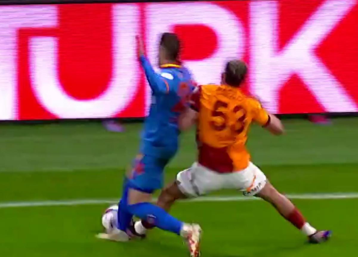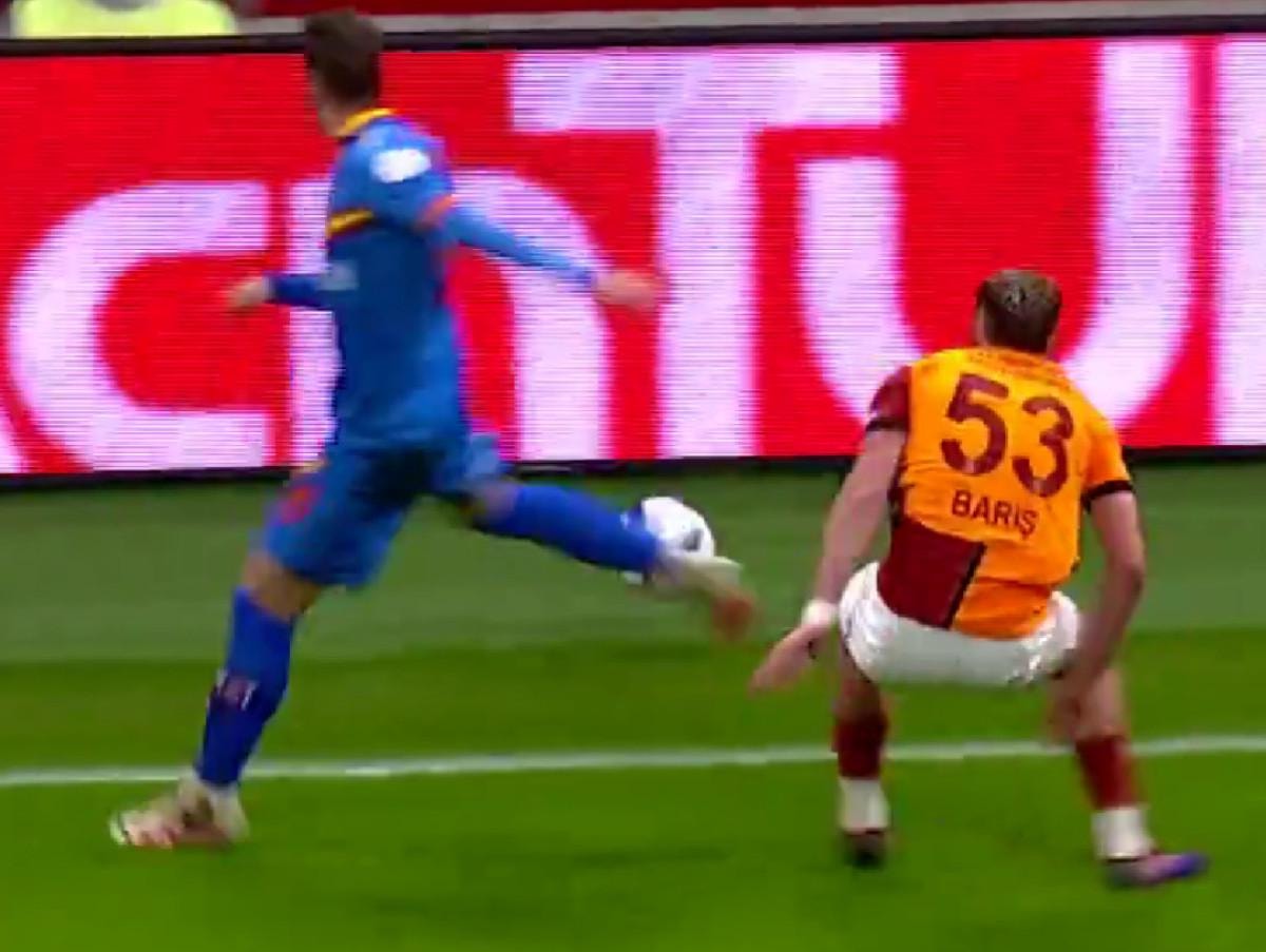 Hakem Alper Akarsu, tacı Galatasaray'a verdi. Barış Alper Yılmaz 'top benden çıktı' dedi ve taç el değiştirdi.
