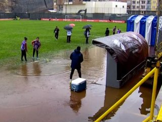 Yağmur nedeniyle stadın birçok bölgesi sular altında kalırken, yedek kulübesinin olduğu bölge adeta göle döndü.