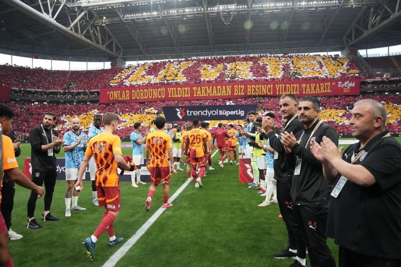 Süper Lig şampiyonu Galatasaray son maçında sahaya, Başakşehirli futbolcularım alkışları arasında çıktı.