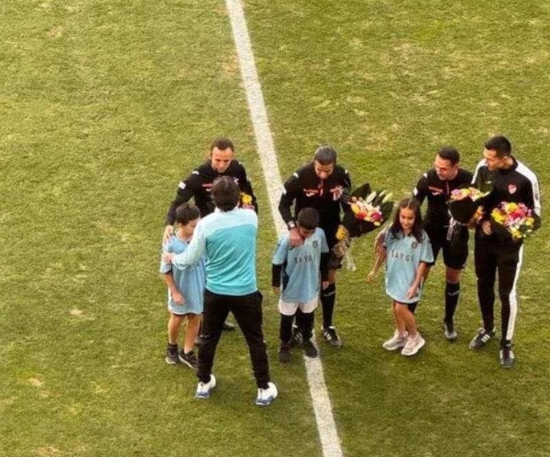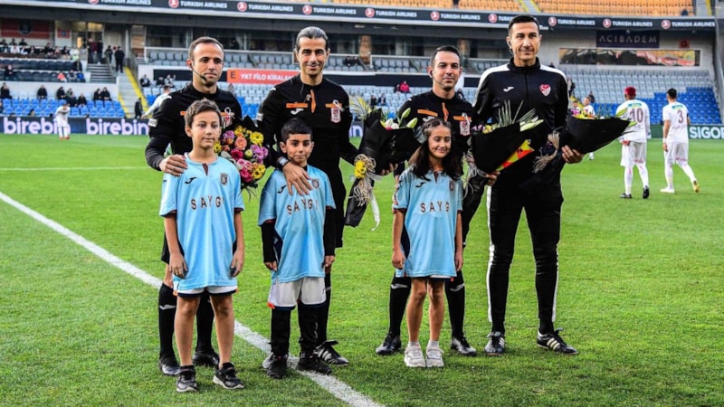 Müsabaka öncesinde gerçekleştirilen seremoni sonrasında Başakşehir Yardımcı Antrenörü Mustafa Keçeli ile üzerlerinde 'Saygı' yazan tişörtlerle hakemlerin yanına gelen çocuklar; hakemler Mete Kalkavan, Deniz Caner Özaral, Mert Bulut ve Fatih Tokail'e çiçek vererek şans diledi.