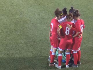 Maç sırasında başörtüsü açılan bayan futbolcunun yanına rakip sporcular gelerek başörtüsünü düzeltmesi için etrafında çember oluşturdu.