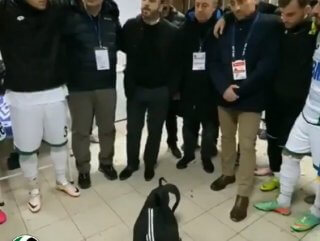 Para dolu çantayı yere koyan başkan, alınan galibiyetin ardından primleri oyuncularına dağıttı.