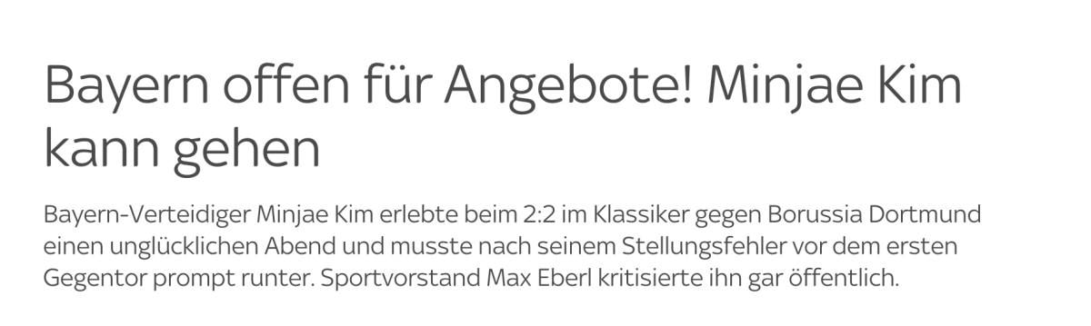 Alman basınından Sky DE'nin haberine göre; Bayern Münih, Kim Min-Jae'den memnun değil.