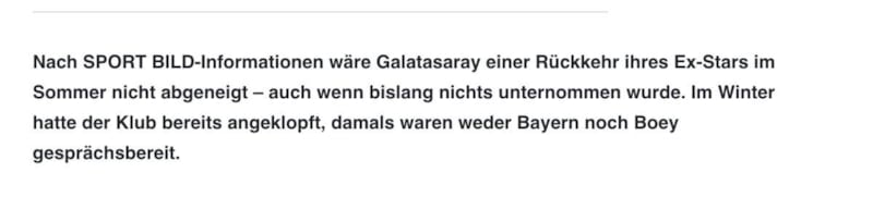 Bild'de yer alan habere göre; Galatasaray, Sacha Boey'i sezon sonunda düşük bir bonservis bedeli karşılığında kadrosuna katmak için Bayern Münih ile temaslara başladı.