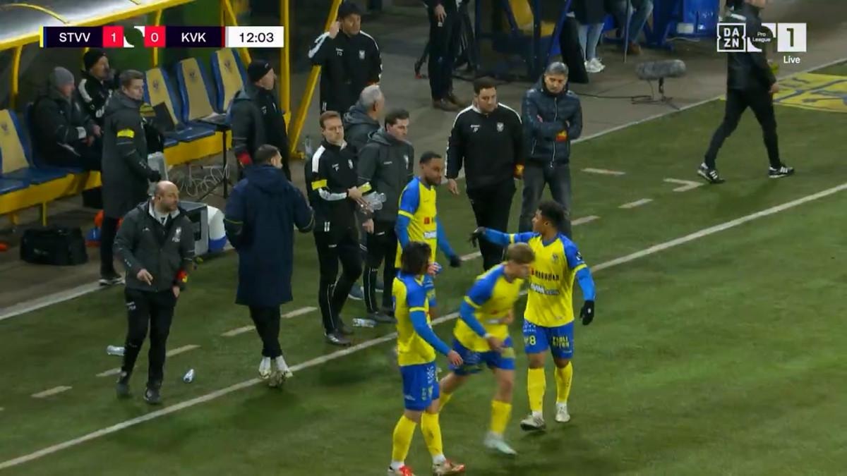 UEFA'nın hakemlere yönelik uyarısının ardından Belçika Jupiler Pro League'de oynanan Sint-Truiden-Kortrijk karşılaşmasında dikkat çeken anlar yaşandı.